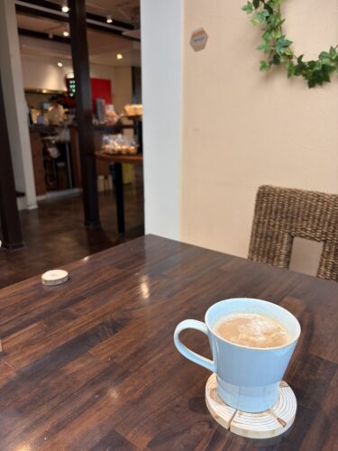 食後はカフェオレをいただきながらほっと一息。